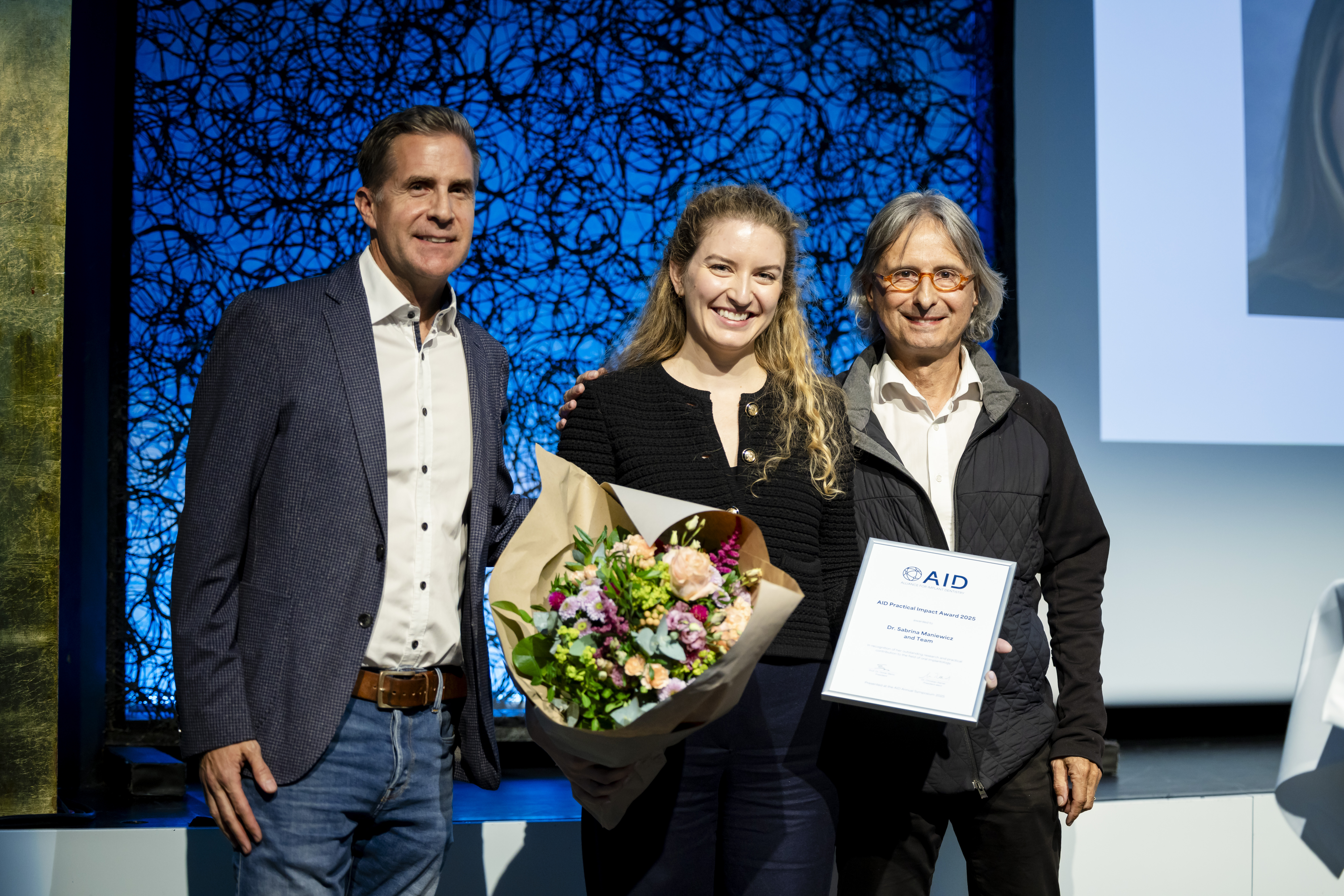 Il vincitore dell'"AID Practical Impact Award" sarà premiato alla conferenza annuale dell'AID in autunno. In questa occasione, i vincitori del premio avranno l'opportunità di presentare le loro ricerche a un pubblico specializzato e di scambiare idee con i principali esperti del settore. La copertura mediatica della cerimonia di premiazione e la presentazione dei vincitori sul sito web dell'AID e sulle riviste specializzate aumenteranno la visibilità dei lavori premiati.